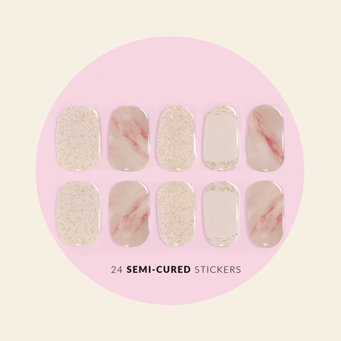 Mitty Semi-cured gel nail stickers are crafted with genuine liquid gel, pre-set at 60% completion. These flexible, self-adhesive strips conform seamlessly to nails of various shapes and sizes. Following application, a brief exposure of just 60 seconds under a LED lamp achieves full 100% curing, ensuring a salon-quality finish.