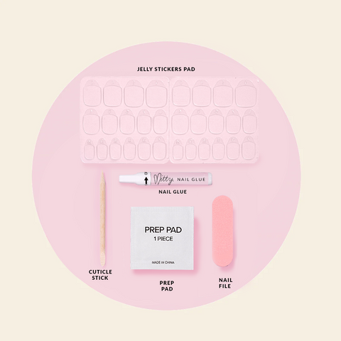 For up to 48 hour look choose a jelly sticker that fits your nail, remove from film, press firmly onto you nail. Tear off the top film.